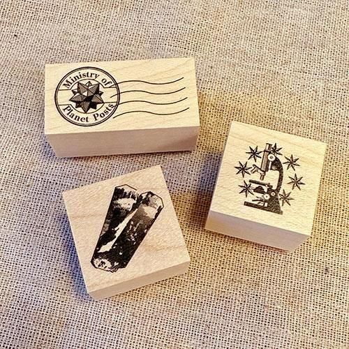 理科的モチーフなど、レトロでかわいい絵柄が揃っています。手帳やノート、身の回りのものにペタペタ押して楽しんでください。