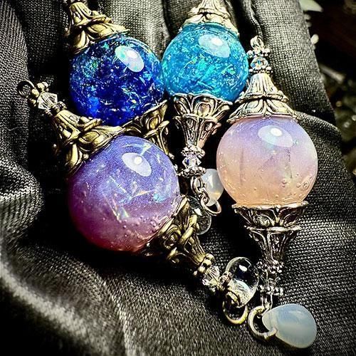 主に代表作であるペンデュラム(ダウジング・占いや魔術のツールとしても用いられる)の首飾りや、歯車を用いたレジンアクセサリーを創造し、文字通り「小さな魔法」を皆さまの日常にお届けします。