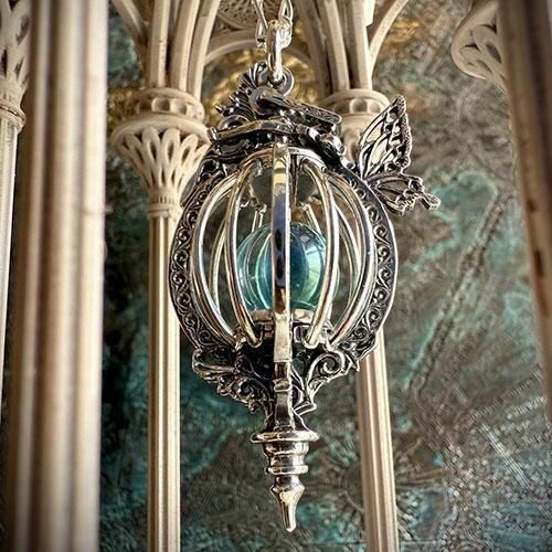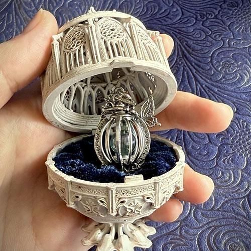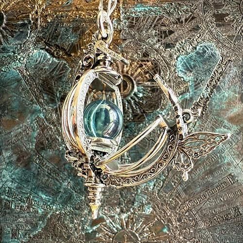 Gimmel Gardenさん20周年を記念してリメイクされた、ブランドを代表するペンデュラム型ペンダント。トップの部分は開閉するギミックで、中の石は取り替えも可能です。